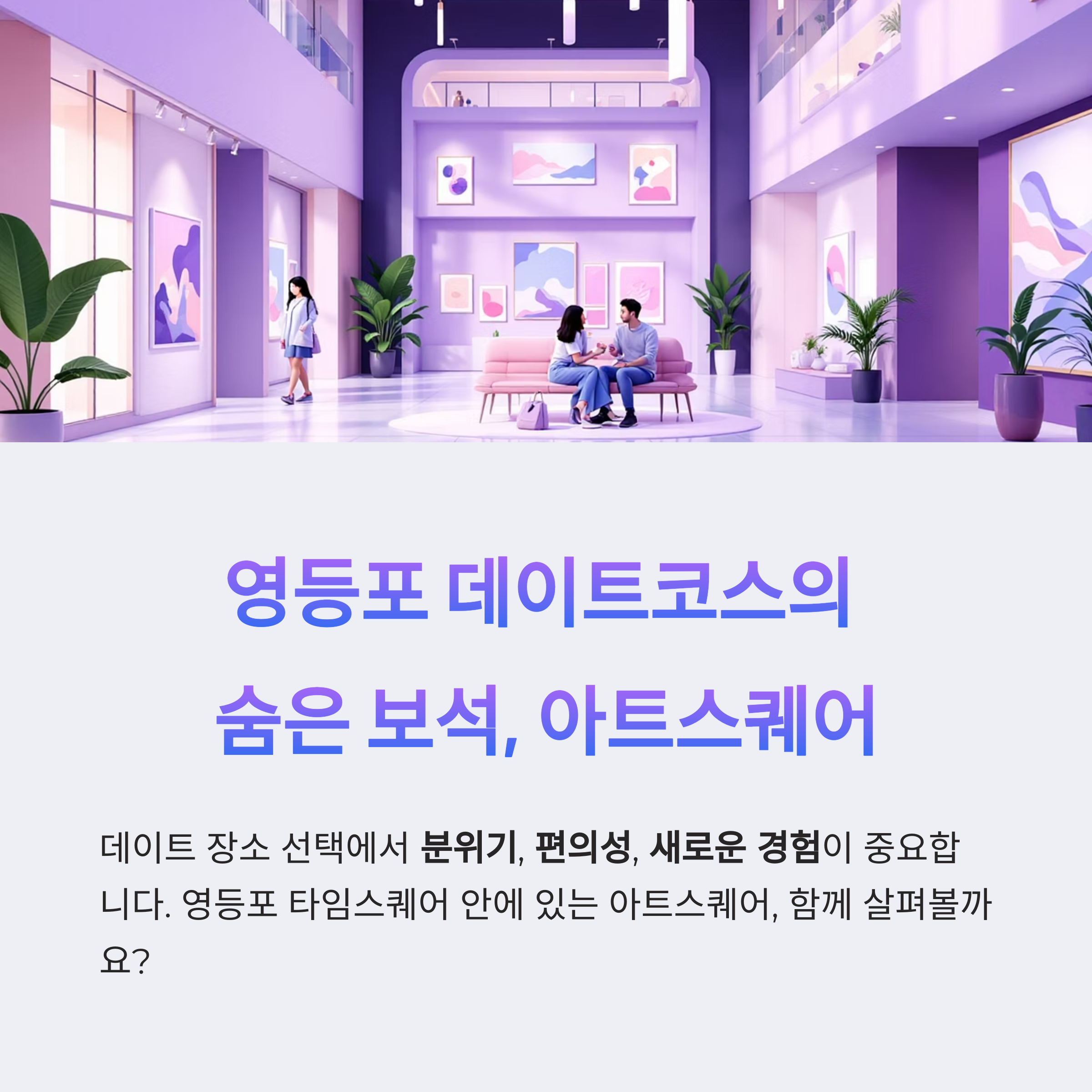이번 주말, 영등포 타임스퀘어 아트스퀘어에서의 데이트를 추천합니다.