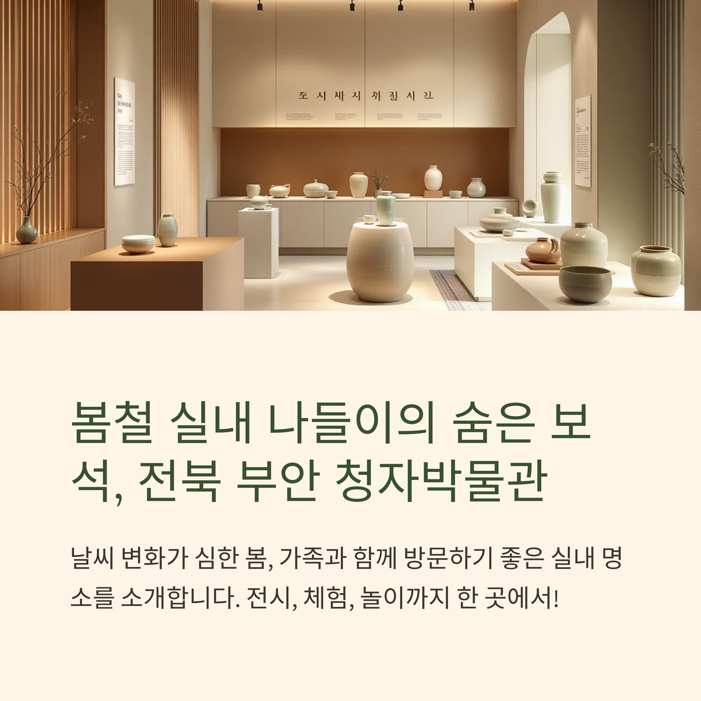 이번 주말, 아이 손을 잡고 부안 청자박물관에서 청자처럼 은은하게 빛나는 추억을 만들어보세요.