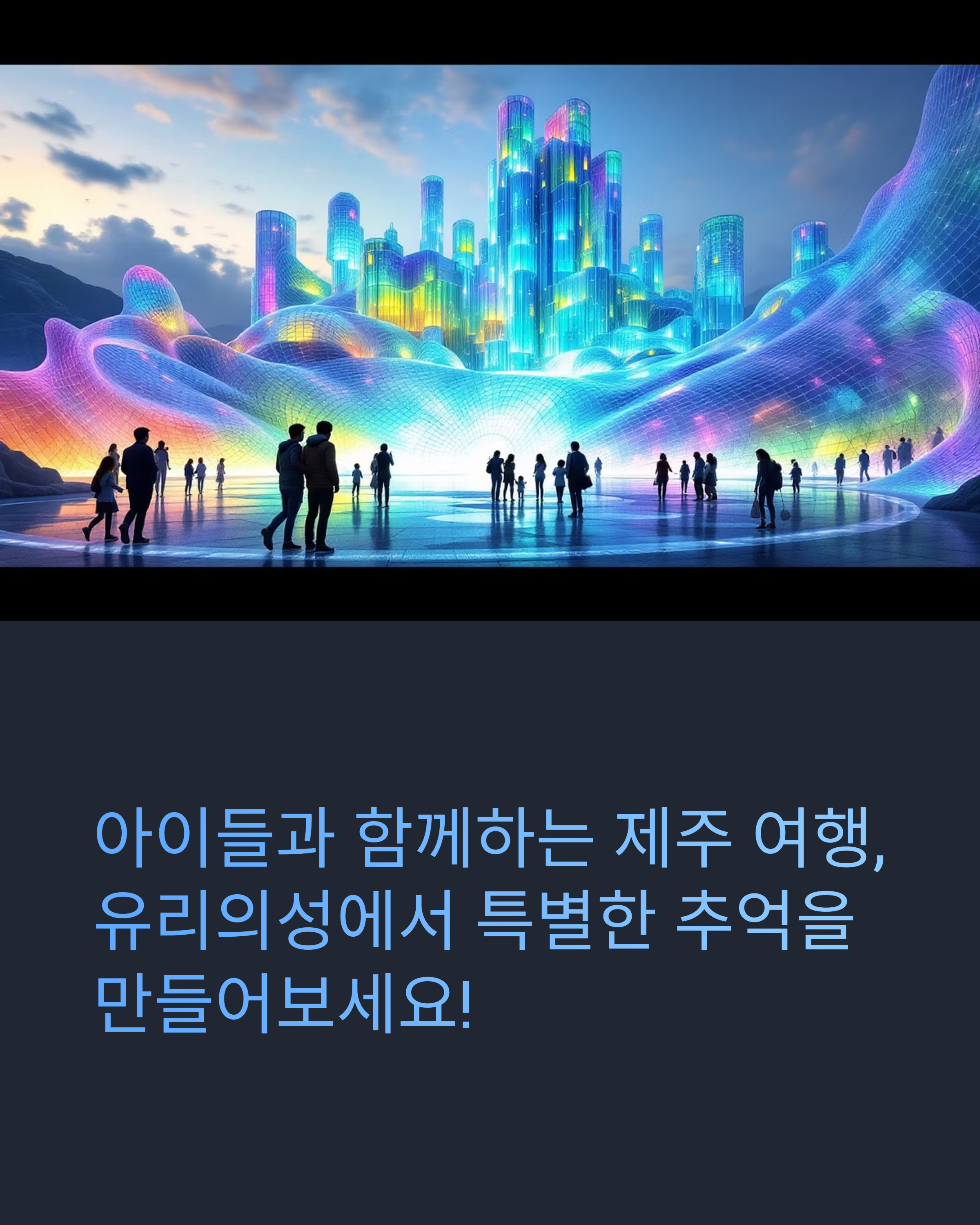 제주 유리의성은 아이들과 함께 더욱 특별한 경험을 선사하는 멋진 장소입니다. 가족 구성원 모두가 즐길 수 있는 다채로운 프로그램과 주변 관광 명소들로 가득 차 있어, 제주에서의 시간을 최고의 추억으로 만들어 줄 것입니다. 이 기회에 아이들과의 소중한 시간을 만들어 보시길 바랍니다. 여행이 끝난 후에도 소중한 기억은 마음속에 영원히 남을 것입니다. 그렇다면 이번 주말, 제주 유리의성에서 특별한 하루를 계획해 보시는 건 어떨까요?